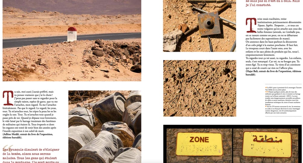 Le traumatisme géologique et environnemental qui s’ensuit, instantané et durable, s’accompagne de celui, moins mesurable, de la souffrance humaine qui perdure jusqu’à aujourd’hui. La violence de l’acte lui-même laissera des traces indélébiles dans les mémoires individuelles et collectives, dans les corps et dans les mémoires, et dans le plus fragile des écosystèmes. Elle témoigne aussi de la logique des secrets d’États sacrifiant homme, faune et flore, et sur des générations. Une violence qui polluera également les rapports de force postcoloniaux autour de la nécessaire construction d’une mémoire commune. Une mémoire otage, encore une fois, de la raison d’État entre Paris et Alger.